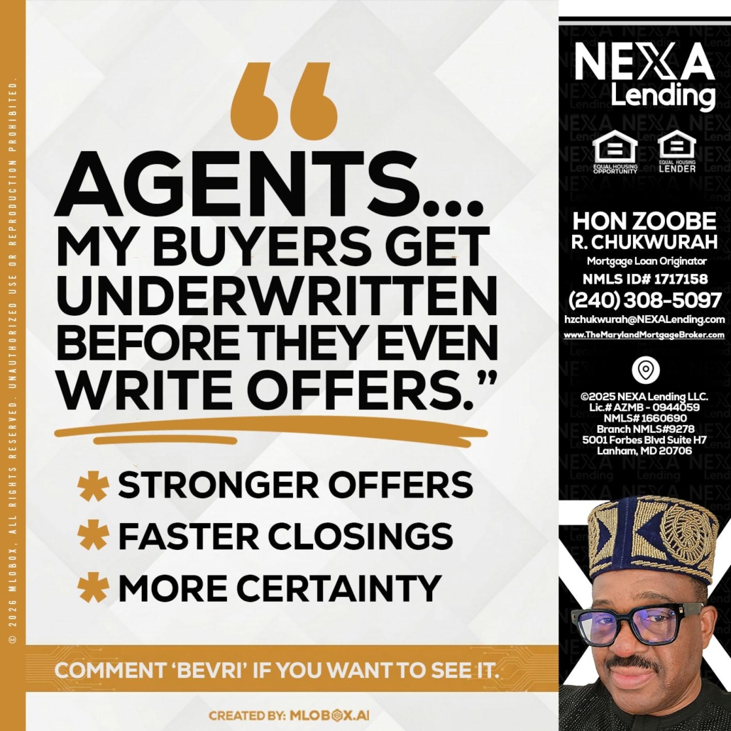 agents - Hon Zoobee R Chukwurah -Mortgage Loan OriginatorHi, my name is Hon Zoobee R Chukwurah. I’m a Loan Officer with NEXA Lending LLC., offering personalized mortgage solutions, fast customized quotes, great rates and service with integrity.