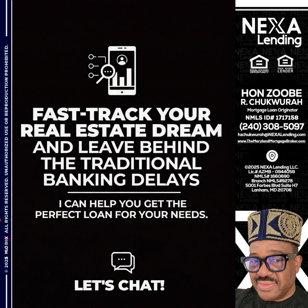 Hi, my name is Hon Zoobee R Chukwurah. I’m a Loan Officer with NEXA Lending LLC., offering personalized mortgage solutions, fast customized quotes, great rates and service with integrity.