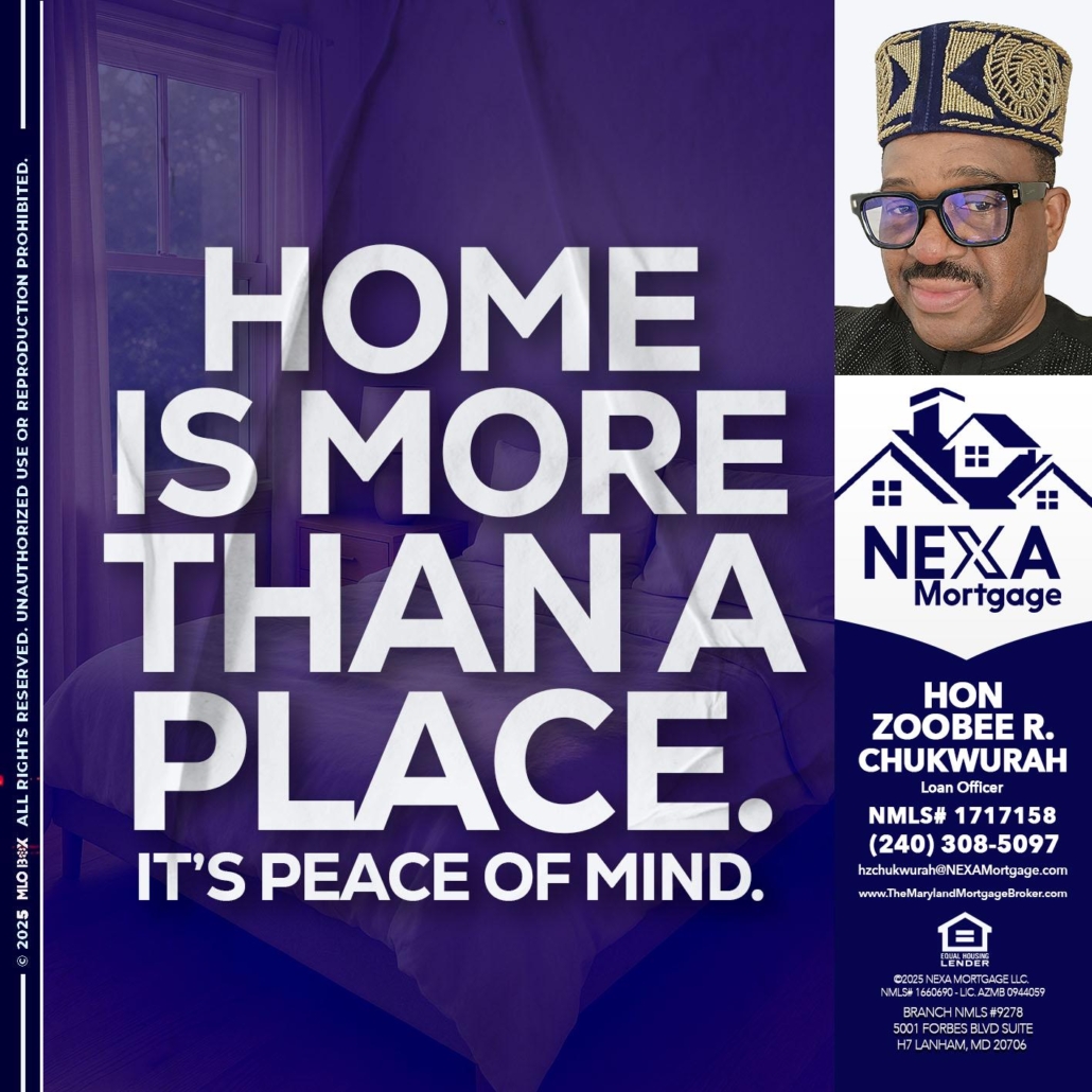 HOME IS MORE - Hon Zoobee R Chukwurah -Mortgage Loan OriginatorHi, my name is Hon Zoobee R Chukwurah. I’m a Loan Officer with NEXA Mortgage LLC., offering personalized mortgage solutions, fast customized quotes, great rates and service with integrity.