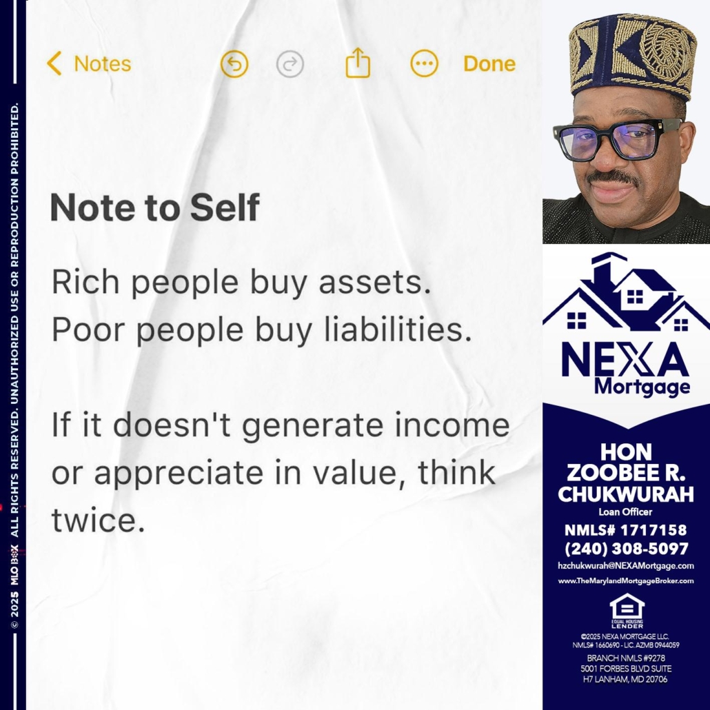 NOTE TO SELF - Hon Zoobee R Chukwurah -Mortgage Loan OriginatorHi, my name is Hon Zoobee R Chukwurah. I’m a Loan Officer with NEXA Mortgage LLC., offering personalized mortgage solutions, fast customized quotes, great rates and service with integrity.