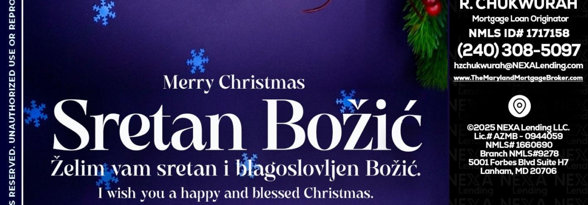 Sretan Božić - Hon Zoobee R Chukwurah -Mortgage Loan OriginatorHi, my name is Hon Zoobee R Chukwurah. I’m a Loan Officer with NEXA Lending LLC., offering personalized mortgage solutions, fast customized quotes, great rates and service with integrity.